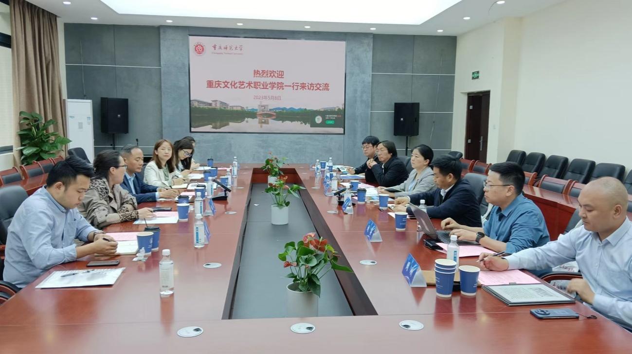 5月8日下午,重庆文化艺术职业学院党委副书记胡刚、重庆文化艺术职业学院副院长胡莉一行六人到av大平台
