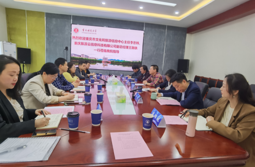 4月13日下午,重庆市文化和旅游信息中心主任李忠祎,重庆旅游云信息科技有限公司副总经理王斯轶一行六人到av大平台
