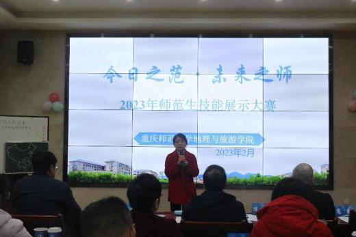本次大赛邀请了重庆市地理教研员张文革、高新区地理教研员陈道华、学院党委书记胡芳、地理科学系副主任杨娅娜以及地理科学系部分教师担任评委。大赛分为选手展示、评委点评、现场颁奖等几大环节。