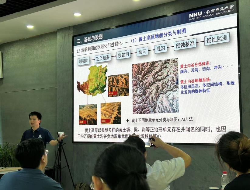 报告中,熊礼阳教授从大数据与人工智能时代背景下,从影像自动提取息、数字孪生、沟道侵蚀及数据应用等方面进行了深入交流。重点介绍了利用深时数字地球(DDE)打造、协调不同语义地球大数据的标准和平台,通过地貌学科平台,辅助研究者更好利用地貌数据开展相关科学研究工作。会后,熊教授与参会师生进行了热烈的讨论,通过本次交流,进一步加强了av大平台