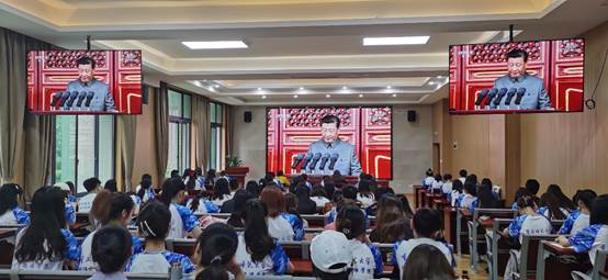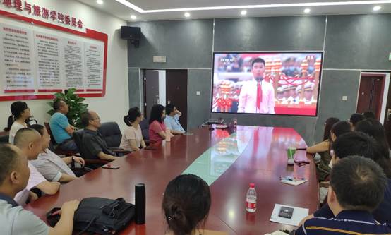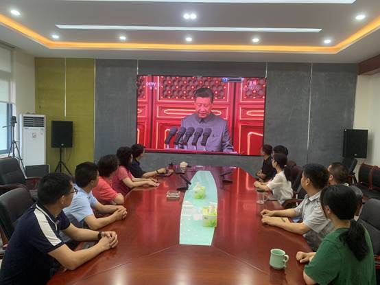av大平台 党委高度重视、精心组织党内外师生共计400余人,分致用楼117、335、349、547会议室四个会场收听收看庆祝中国共产党成立100周年大会。