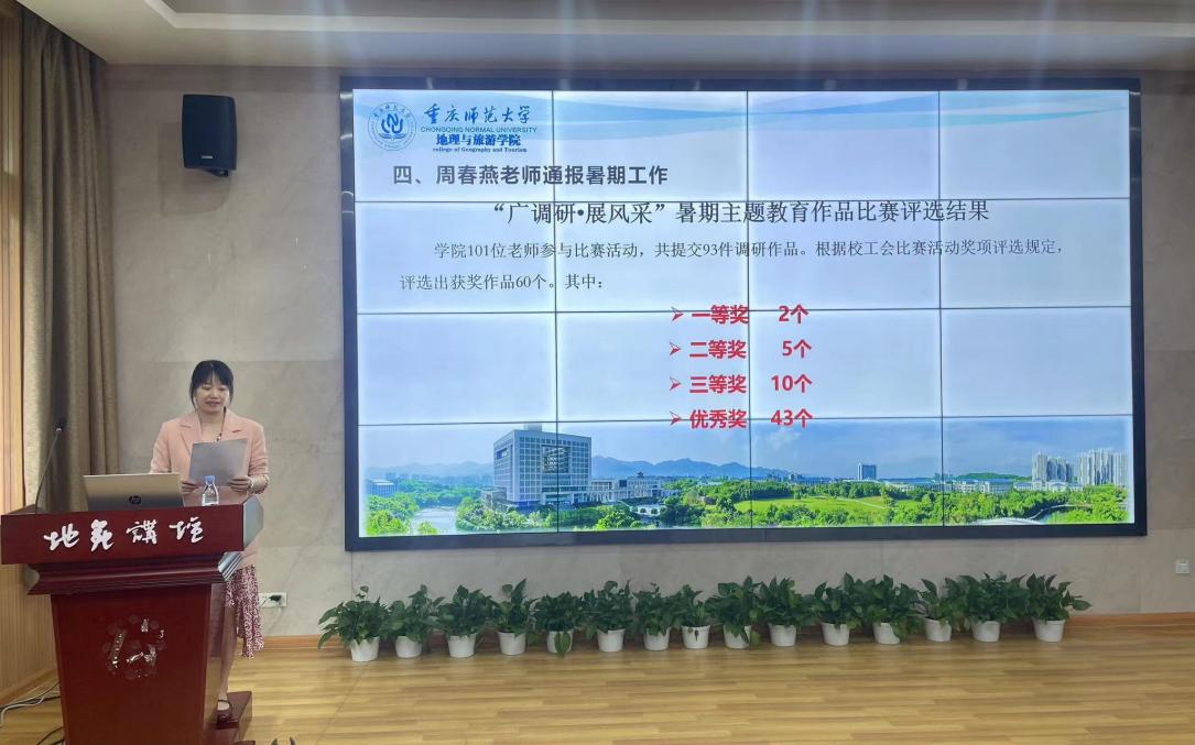 主题教育,调研先行。此次学院“广调研•展风采”暑期主题教育作品比赛活动全院教职员工积极参与,充分展现了地旅人“海纳百川、志存高远、励精笃行、求实创新”的精神风貌,主题教育见实效。