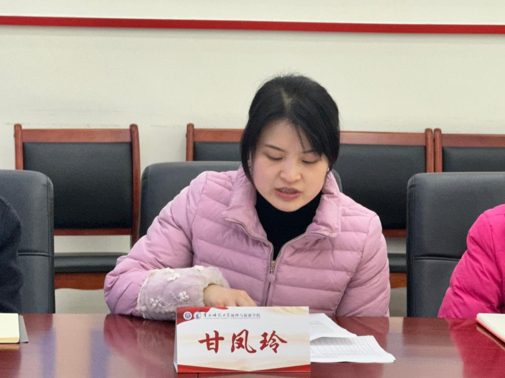 研究生第四党支部书记甘凤玲从研究生党员和专业角度出发,认为新质生产力理念与地理、旅游等学科发展高度契合,可在生态保护、智慧旅游、地理科普等领域探索实践。她表示,青年学子应努力将专业所学与服务国家战略相结合,在促进民族团结、践行统战理念中展现担当,将共同体意识融入社会调研与志愿服务。