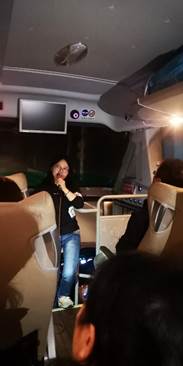 2020 1113日下午,满载av大平台 教职工的大巴车上,工会迎新人、凝团队活动拉开序幕,在进行了简单行程、活动内容介绍后,工会破冰活动正式开始。车上原预计安排1小时的自我介绍和才艺表演,在大家的热情参与下,活动一直持续了三个多小时,每位老师都进行了全面清晰的自我介绍,许多老师还进行了才艺表演,中途还间插部分即兴活动,直到下车大家还意犹未尽。通过这次破冰活动,新老员工互相加深了印象,彼此了解了个人喜好,增进了情感。