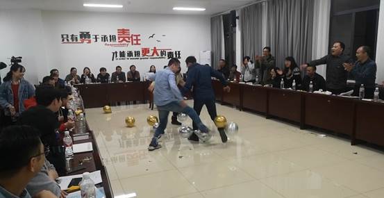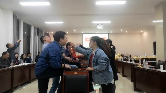 20201114日晚上,工会在城口蔚徕酒店开展团队挑战活动,老师们分组开展联谊活动,先后进行了“你比我猜”“踩气球”“筷子夹乒乓球接力”“运气球接力”等挑战赛,中途间插各队老师们准备的团队和个人节目。