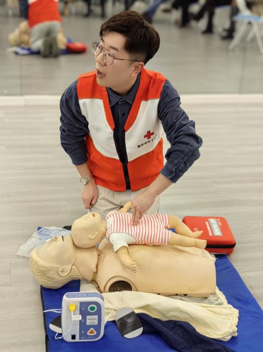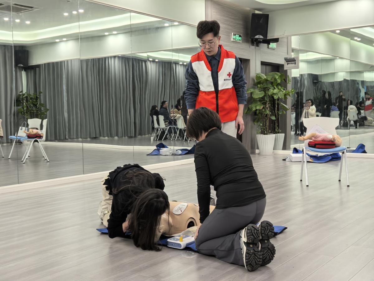 在单人急救培训之后,杨漾老师对各类不同现场的应急救护知识进行了梳理和补充,并指导胡俊希和巫昊燕两位老师进行了双人急救心肺复苏操作技能的演示。通过此次培训,教师们不仅掌握了心肺复苏等应急救护技能,还增强了自救互救意识和能力。