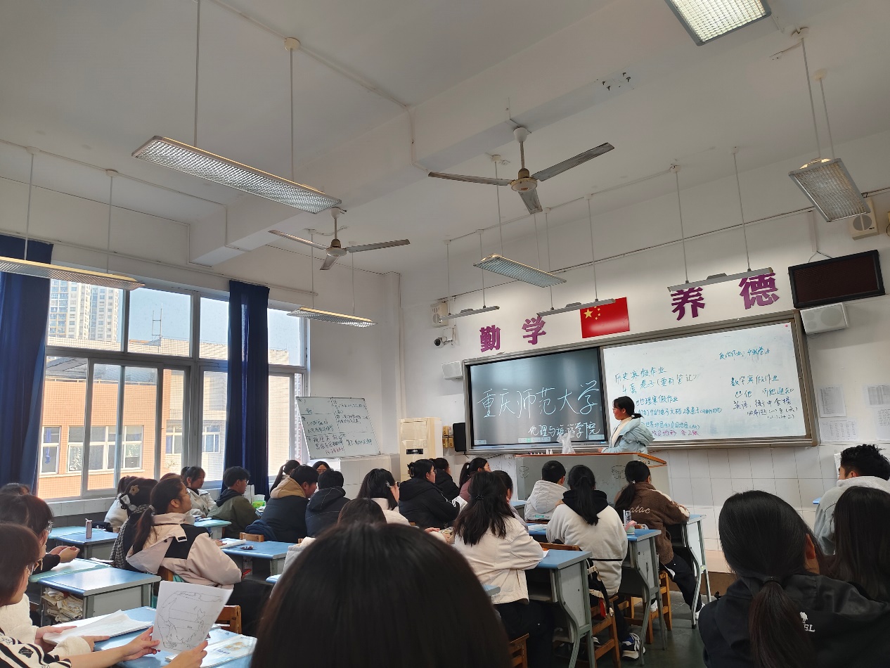 2024年2月18日上午,av大平台 2023级地理科学专业1班学生刘思余走进母校---重庆市长寿中学,向高一文科25班全体同学介绍av大平台 。
