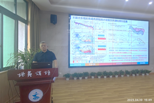 张强教授系统介绍了研究亚洲水塔水危机问题的缘起,研究方法的选取及研究结果的分析与论证。该研究成果系统分析了青藏高原陆地水储量时空异质性演变趋势及其驱动机制,详细阐述了青藏高原陆地水储量亏缺区域空间的历史演变的模拟,展示了青藏高原陆地水储量亏缺区域的时空格局演化,未来演变特征以及陆地水储量亏缺状态。报告引起了与会师生的广泛兴趣,与会师生踊跃提问,张强教授针对师生的提问耐心回答,鼓励地理学者和学生要积极投身全球气候变化等全球环境变化的前沿研究。