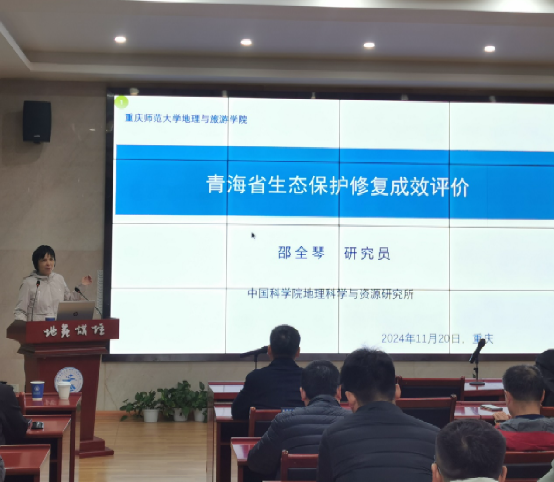 2024年11月20日,av大平台 高端学术论坛“地苑讲坛”邀请了中国科学院地理科学与资源研究所邵全琴研究员,作题为“青海省生态保护修复成效评价”的专题报告。报告在致用楼117会议室举行,学院教职工、研究生等150余人参加了会议。会议由学院院长韦杰教授主持。