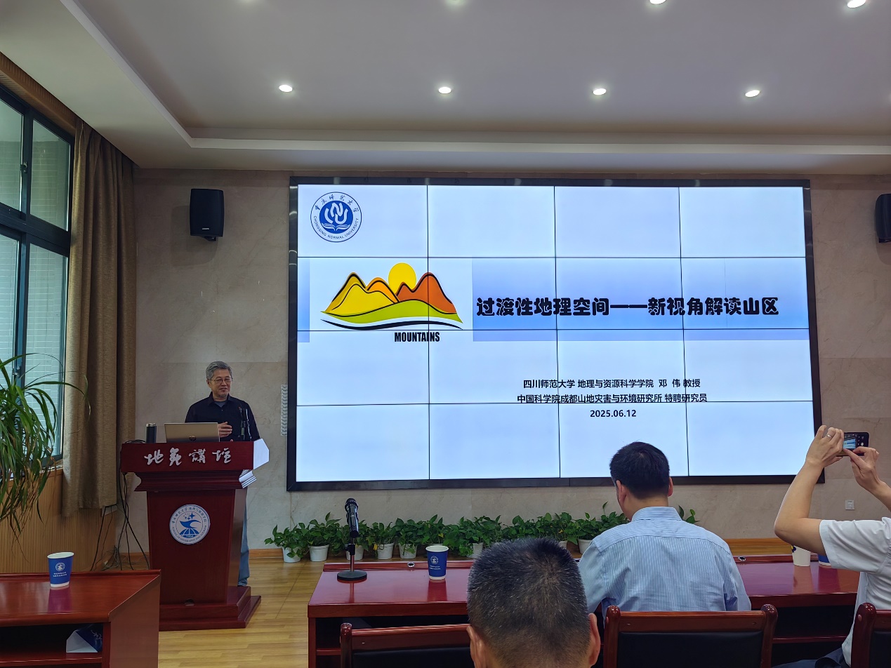 高端学术论坛“地苑讲坛”邀请了四川师范大学邓伟教授,作题为“过渡性地理空间-新视角解读山区”的专题报告。报告在致用楼117会议室举行,学院教职工、研究生等150余人参加了会议。会议由韦杰院长主持。