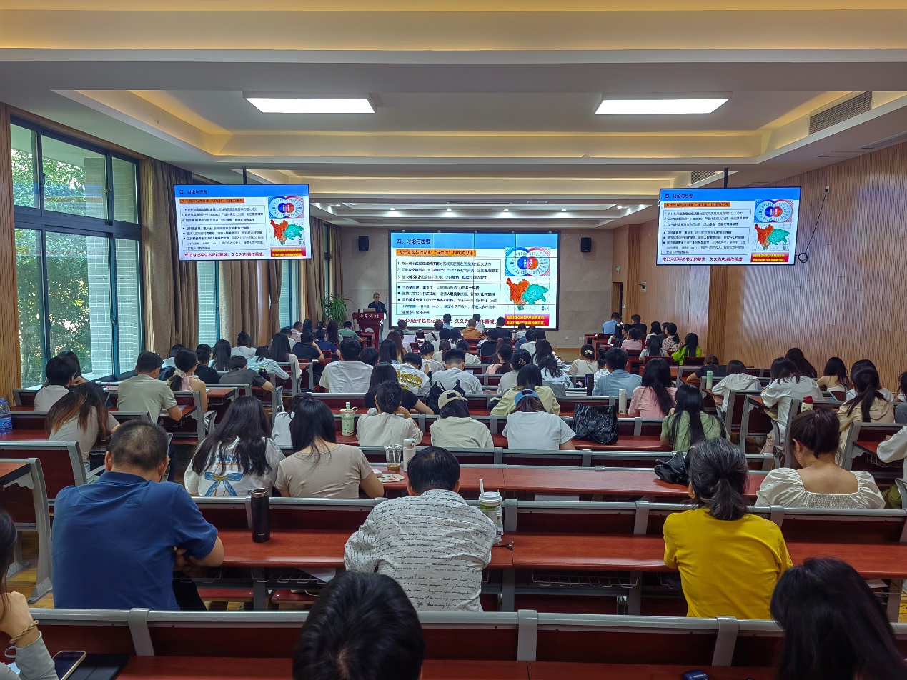 该报告引起了在场师生的广泛兴趣,主题报告后的提问环节中,邓伟教授与在座师生围绕乡村景观与旅游业“链生体”构建的思考、城市与乡村过渡性地理空间、少数民族文化特色与过渡性地理空间等问题进行了深入交流,并引用习近平总书记的要求:久久为功,善作善成;鼓励大家要增强自信,挖掘学术潜力,突出探索性和科学价值,突出区域特色,不断进步,超越自我。