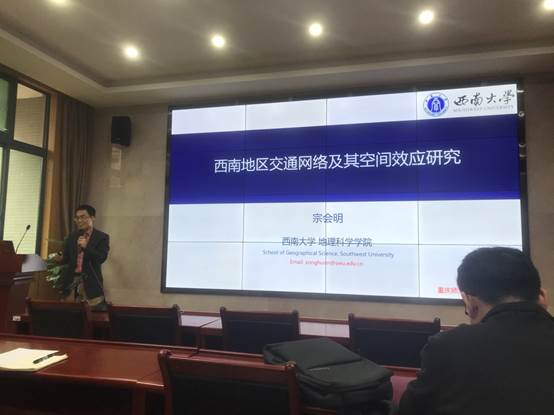 宗会明教授以《西南地区交通网络及其空间效应研究》为题,从不同国家、不同城市群着手,以西南地区交通网络及其空间效应为基础,研究了道路可达性、空间公平性和交通供需的不平衡性。