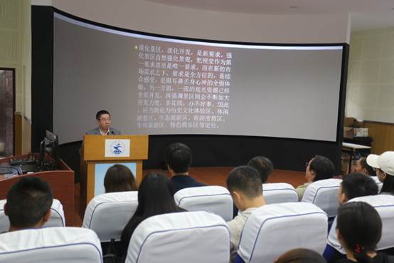 最后,魏教授用“心境即欣境”作为本次讲座的结束语。他说:“在旅游的过程中,时间空间化,空间时间化。时空变幻,在时间上是连续的,在空间上是继起的,在理念上是传承的,在文化上是提升的。如果心中有诗意,何处无诗歌?如果胸中有远方,哪里不是远方?心境即欣境。”全场师生被魏教授的专业学识与幽默谈吐所吸引,讲座在掌声潮中落下了帷幕。