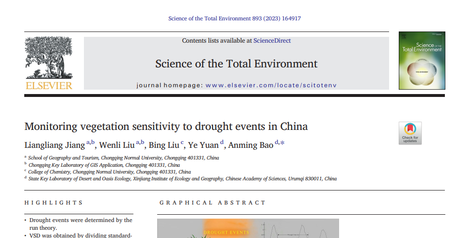 系列相关研究成果以题为《Monitoring vegetation sensitivity to drought events in China》发表在中科院1区top期刊《Science of the Total Environment》。av大平台 姜亮亮老师为第一作者。论文链接://dx.doi.org/10.1016/j.scitotenv.2023.164917