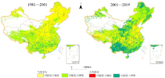 以题为《中国植被碳源/汇时空演变特征及其驱动因素分析》发表在一级学报《生态学报》。av大平台 研究生刘文利为第一作者,姜亮亮老师为通讯作者