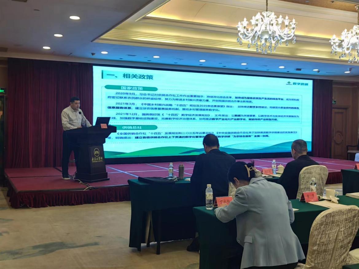副教授、中再云图首席技术官孙德亮就“数字化技术助力供销合作社产业转型升级”为主题进行了发言,主要从数字供销建设的背景与意义、各地数字供销建设开展情况,数字供销建设思路和中再云图对数字供销的思考四个方面进行介绍。