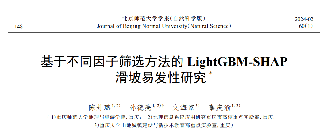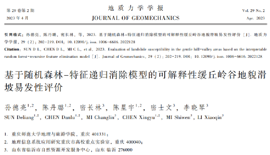 孙德亮教师的带领下,2020级地理信息科学本科生陈丹璐发表了系列关于滑坡易发性评价的学术论文,其中SCI期刊论文一篇(Land),中文核心期刊论文两篇(《地质力学学报》和《北京师范大学学报》)。