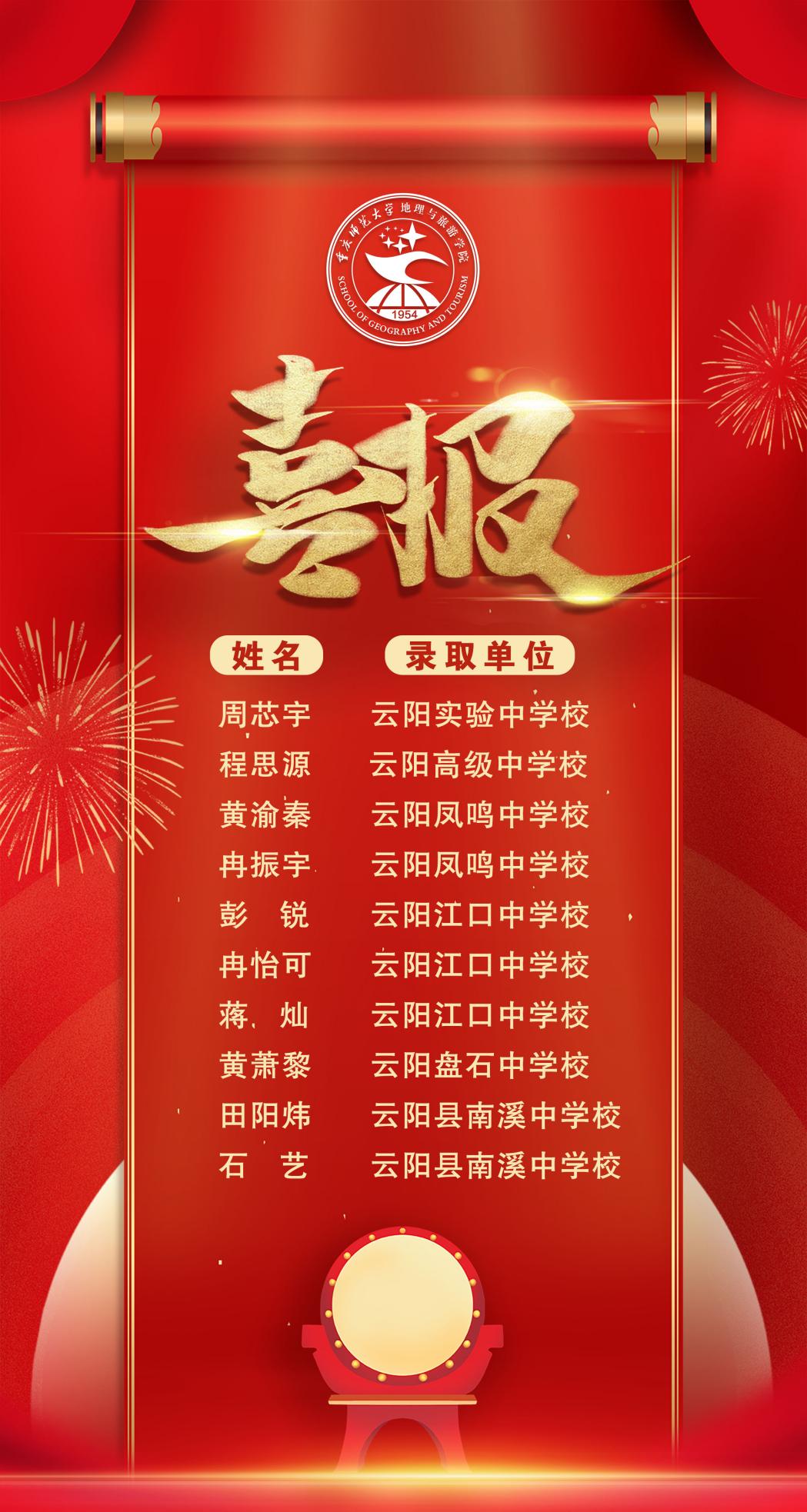 喜报:av大平台 av大平台 10名毕业生在云阳县教育事业单位招聘中成功签约!