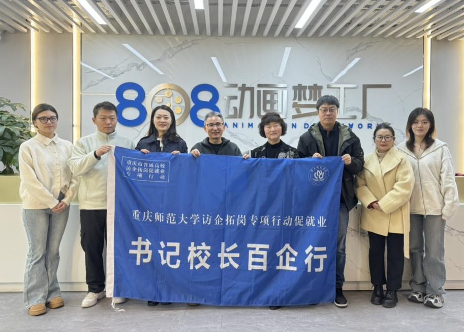 副院长张云耀、历史与社会学院副教授刘芳前往重庆808动画梦工厂,就促进学生就业、人才培养数字转型、动画与课堂融合创新等方面与808集团董事长廖志高、808重庆分公司技术总监徐贤及其人事部负责人员展开了深入探讨。