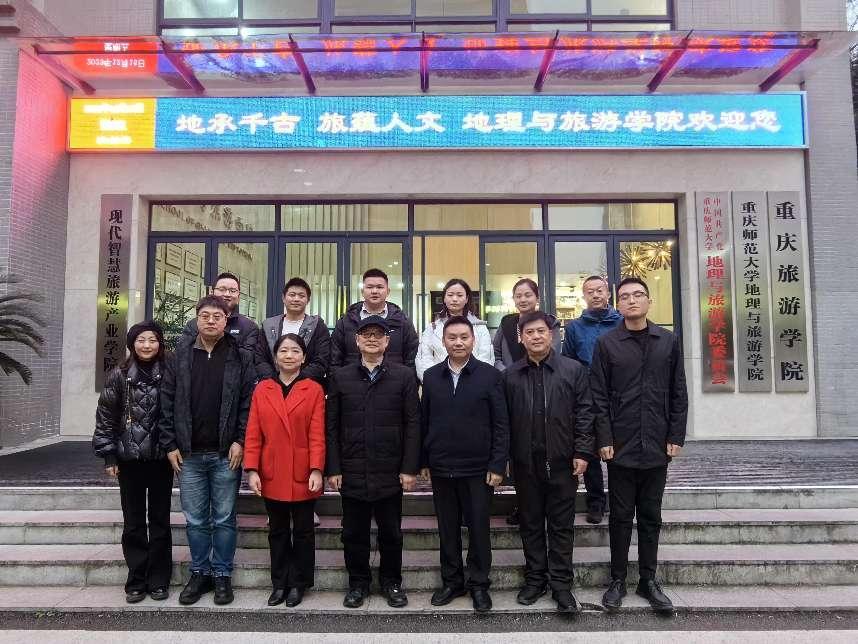 12月15日,重庆垫江县政协委员会原党组副书记、副主席李锦明、重庆兴垫文化旅游开发有限公司董事长王辉、总经理孟凡旭、项目管理部副经理孙敏航、宣传营销部副经理匡红玲、运营管理部副经理郭浩、综合部主管杨凯一行7人到av大平台 进行交流访问,av大平台 党委书记胡芳、副院长(主持工作)韦杰、院长助理、旅游管理系主任张云耀、酒店管理系主任汪琳姝、职业技术教育(旅游服务)研究生领衔导师胡传东和智慧旅游创新团队秘书杨永丰参加了交流会,会议由党委书记胡芳主持。