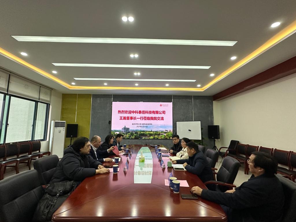 2024年1月16日上午,中科泰岳科技有限公司王瀚董事长,副总裁李思、张慧、沈国阳一行到av大平台 交流。av大平台 党委书记胡芳,副院长(主持工作)韦杰,副书记、纪委书记熊宇,全域智慧旅游重庆2011协同创新中心主任罗仕伟,院长助理、旅游管理系主任张云耀参与了交流,学院党委书记胡芳主持了交流会。
