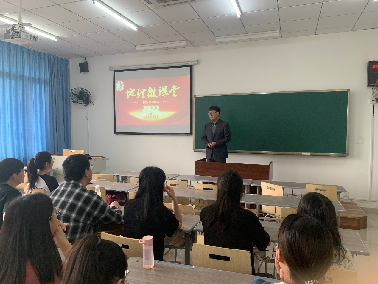 7:30,到达弘德楼13401教室,指导地理科学(师范)2020级二班同学开展学院师范生技能培养新项目“地理微课堂”活动;