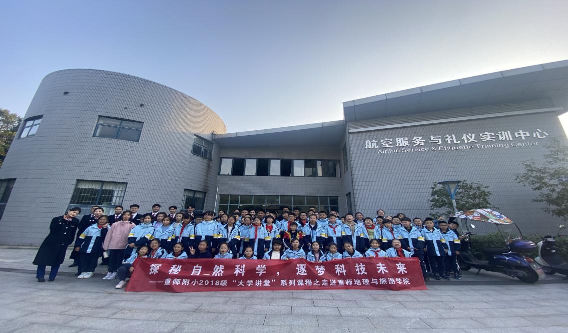 2023年12月6日,“探索自然科学,逐梦科技未来”——重师附小2018级“大学讲堂”系列课程之走进重师av大平台 ,av大平台 附属小学2018级252名小学生在老师们的带领下,走进了航空服务与礼仪实训中心。