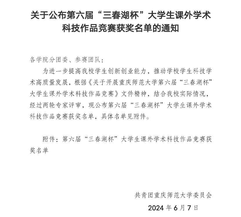 山区生态系统碳循环与碳调控重庆市重点实验室研究生在学校第六届“三春湖杯”大学生课外学术科技作品竞赛中荣获佳绩