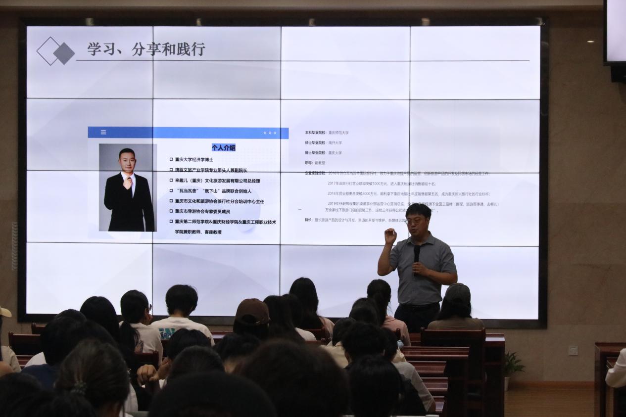 整场讲座中,张老师以其丰富的经验和深邃的见解,为师生们带来了一场精彩纷呈的学术盛宴。他的演讲深入浅出、引人入胜,使大家深受启发。让同学们对旅游管理专业、对个人发展有了更深入的理解和认识。