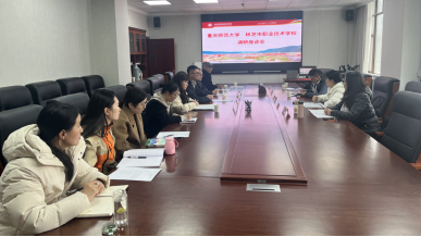 3月29日学院党委书记胡芳、酒店管理系主任汪琳姝、旅游管理系副主任张海龙、教师王泽一行四人至林芝市职业技术学校,并与林芝市职业技术学校学校党委委员、副校长李桂锋,教务处、旅游产业系相关部门负责人,以及盛艳林等6位中职培训班学员开展了调研座谈活动。