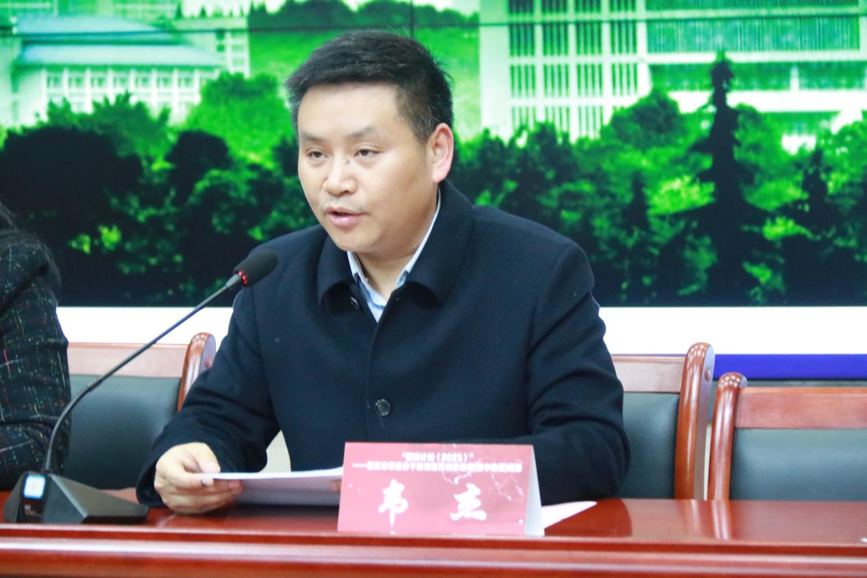 主持工作的副院长韦杰教授代表承训单位讲话。韦杰副院长(主持工作)向全体学员们详细介绍了学院的发展沿革、办学现状和平台设施等教学教研资源。并向大家介绍了培训的整体安排并表示学院将全力配合此次培训工作,鼓励学员们充分利用学院良好充足的资源保障,认真学习、交流研讨、反思提炼,预祝参训学员能够取得良好成绩。