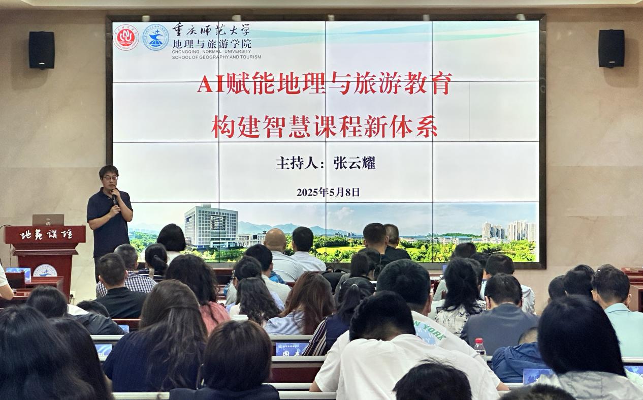 邀请超星泛雅集团资深教育技术专家杨芬老师为学院教师开展题为“AI赋能地理与旅游教育——构建智慧课程新体系”的专题培训会。本次培训由学院副院长张云耀教授主持,旨在响应国家教育数字化战略,推动学科教学向智慧化、精准化转型。学院领导班子与近百名教师全程参与培训。