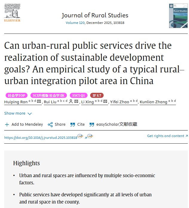 GIS应用研究创新团队研究生在《Journal of Rural Studies》发表研究成果