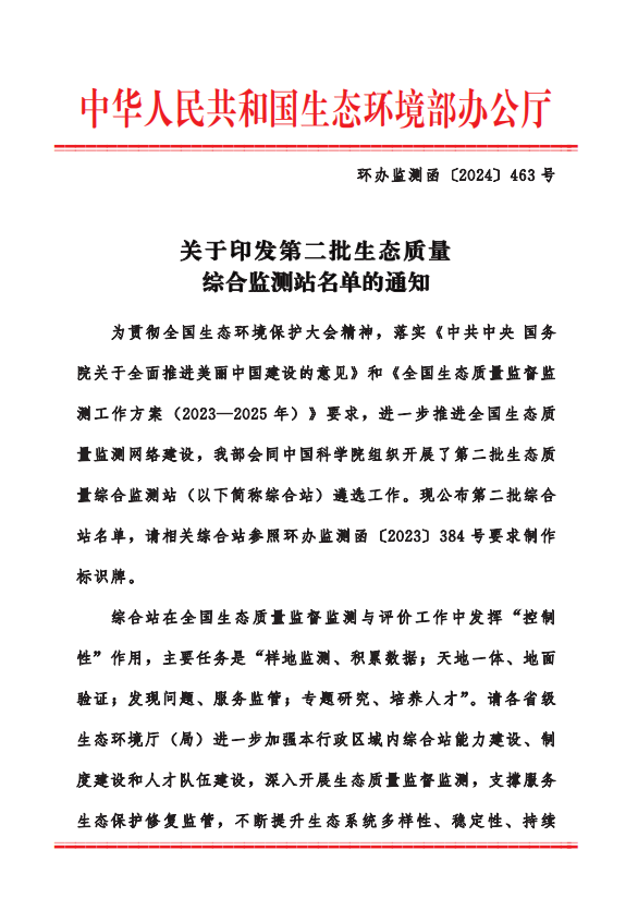 野外科学观测研究站成功入选生态环境部 生态质量综合监测站