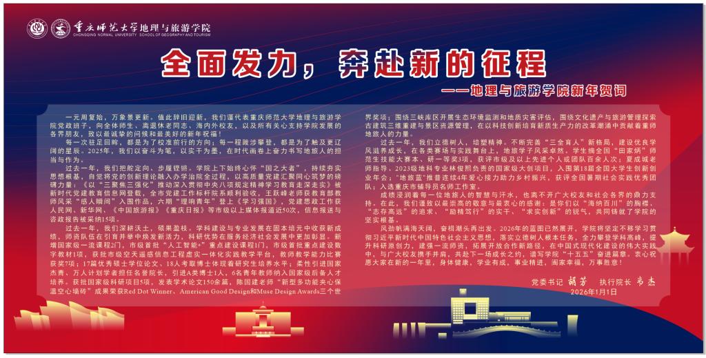 忆往昔,展未来,金秋十月,硕果累累,在重庆师范大学70周年华诞之际,为追溯历史足迹,共绘发展蓝图,10月20日下午,在致用楼209会议室,地理与旅游学院举办了庆祝建校70周年校友师生座谈会,来自五湖四海的150余名校友们带着对往昔岁月的怀念与对母校未来的期许,纷纷踏入这片熟悉的土地,学院领导班子和师生代表、学院退休领导和教师代表、全体返院校友共同参加了此次座谈会。现场座无虚席,整个会场欢声笑语,精彩纷呈,学院...